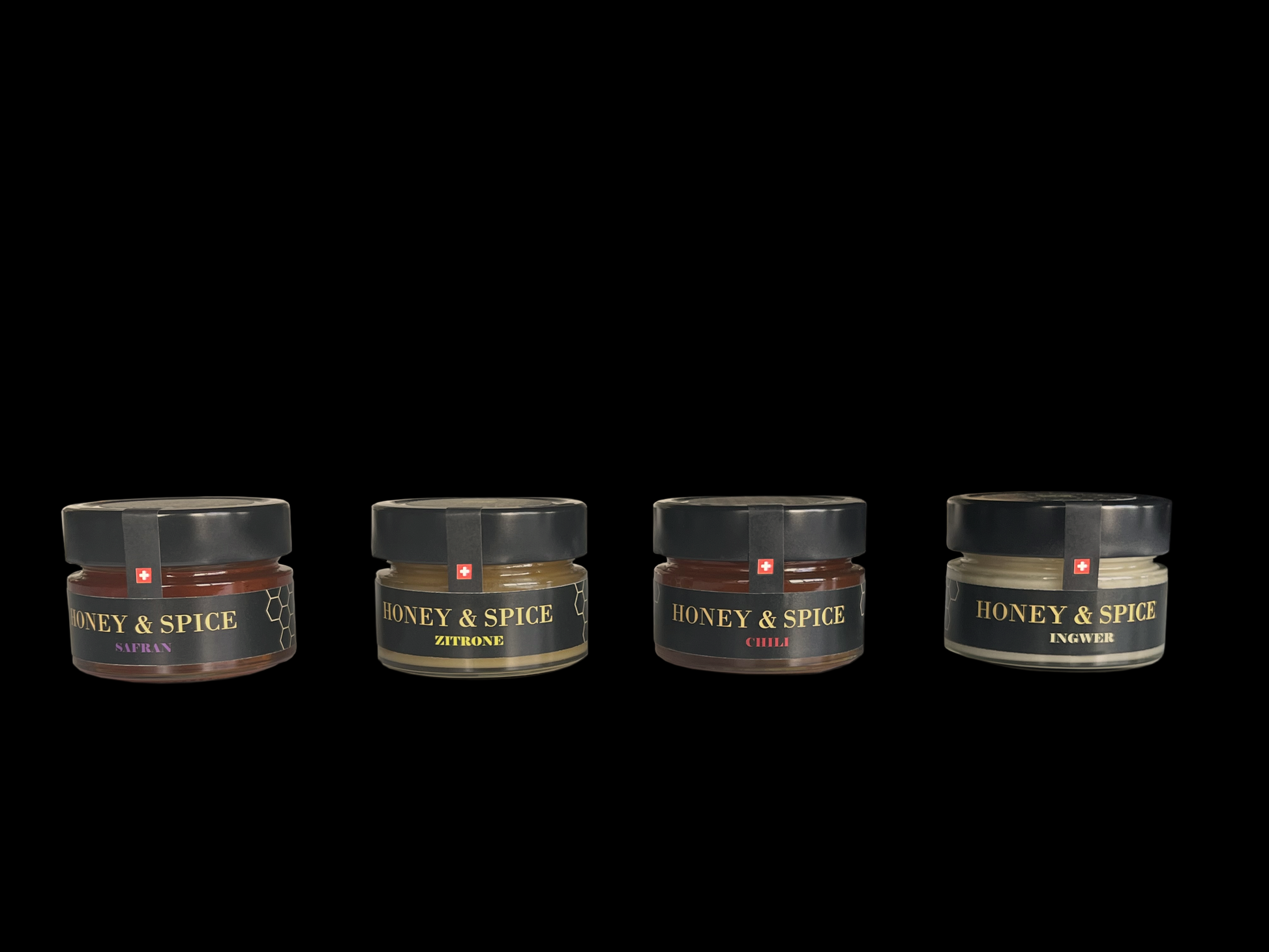 Unsere exklusive Viererbox vereint unsere vier aussergewöhnlichen Honigkreationen: Chili, Safran, Zitrone und Ingwer. Diese Vielfalt bietet ein einzigartiges Genusserlebnis – perfekt als Geschenk oder um sich selbst durch unser Sortiment zu probieren.
